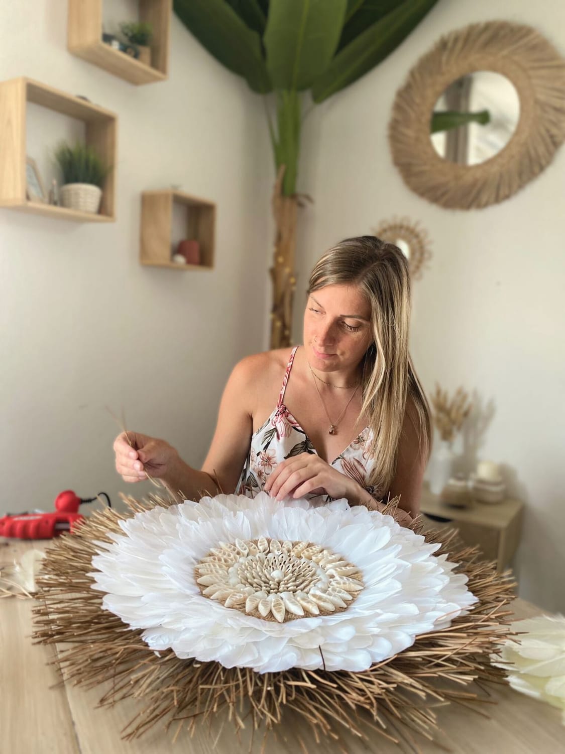 Je m’appelle Alexandra, et depuis 2020, je crée des objets de décoration bohème sous le nom d’Heia Design. 🐚